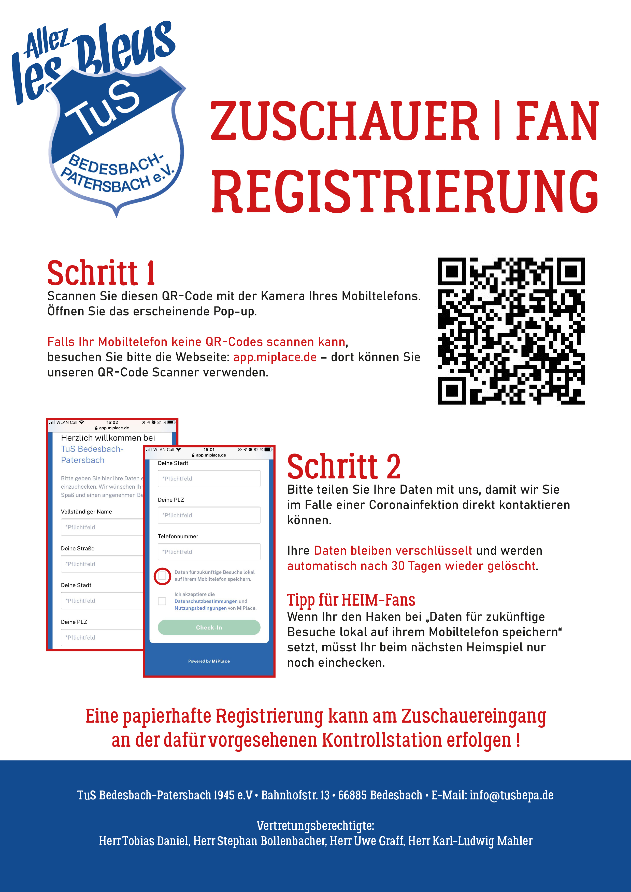 Wie ja mittlerweile allseits bekannt sein dürfte, müssen sich alle Besucher bei den Heimspielen des TuS coronabedingt in Meldelisten eintragen. Es gibt dazu eigentlich 3 Möglichkeiten: