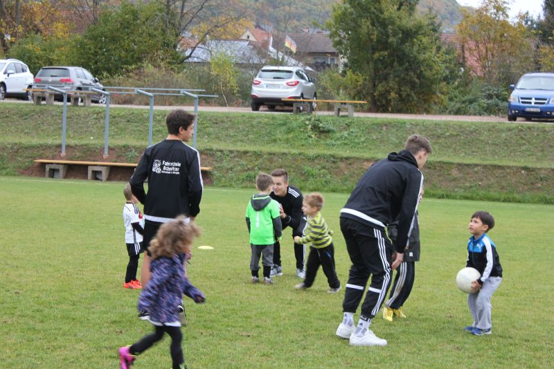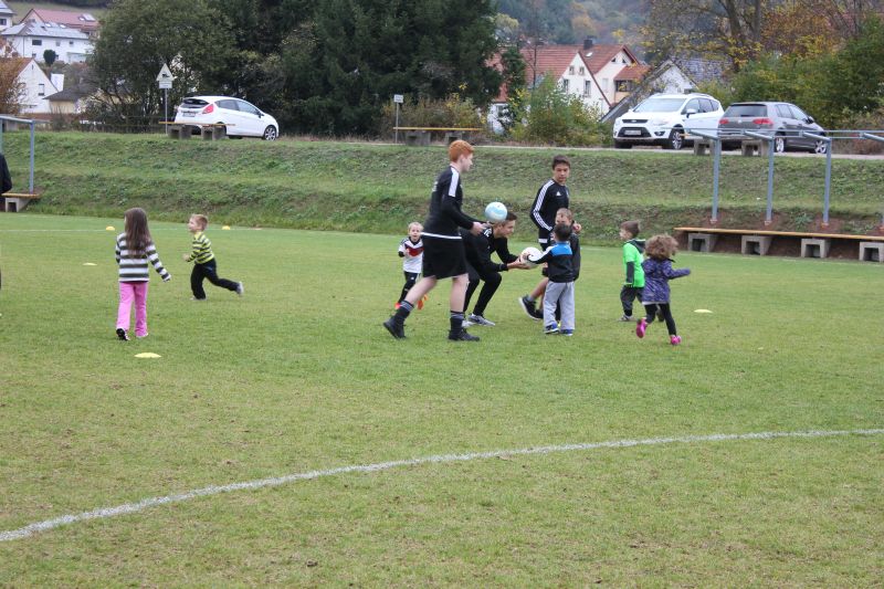 Nach Aufteilung der Kinder in Kleingruppen wurden Spiele zum gegenseitigen Kennenlernen, sowie verschiedene Fangen-Variationen durchgeführt. Nach teilweise zurückhaltender Anfangsphase war das Eis schnell gebrochen und man sah den Kindern den großen Spaß und die Bewegungsfreude an. Zum Abschluss des Trainings erfolgte noch ein kurzes Fußballspiel mit allen anwesenden Kindern. Bambini-typisch wurden jedoch Spielfeld-Grenzen und Spielrichtungen noch keine allzu große Bedeutung beigemessen, sodass die reine Balljagd und der Spaß im Vordergrund standen.
