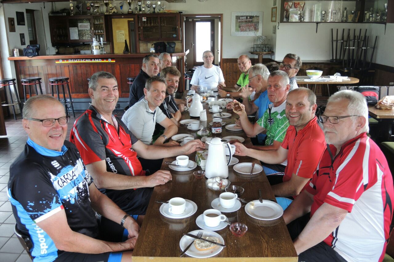 Von Mittwoch auf Donnerstag hatte der TuS 16 Radsportfreunde aus den Hohenloher Bergen zu Gast im Sportheim. Die Truppe machte auf ihrer 401 KM langen Tour Rast in Bedesbach. Der jüngste Fahrer ist 44 Jahre alt, der älteste stolze 77 Jahre. Die Herren führten in diesem Jahr ihre 29. Fahrt durch und waren über die Gastfreundschaft des TuS und die Verpflegung im Gasthaus Born sehr erfreut.
