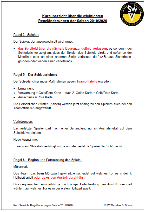 Wie vor jeder Saison ergeben sich im Regelwerk ein paar kleinere und größere Änderungen.